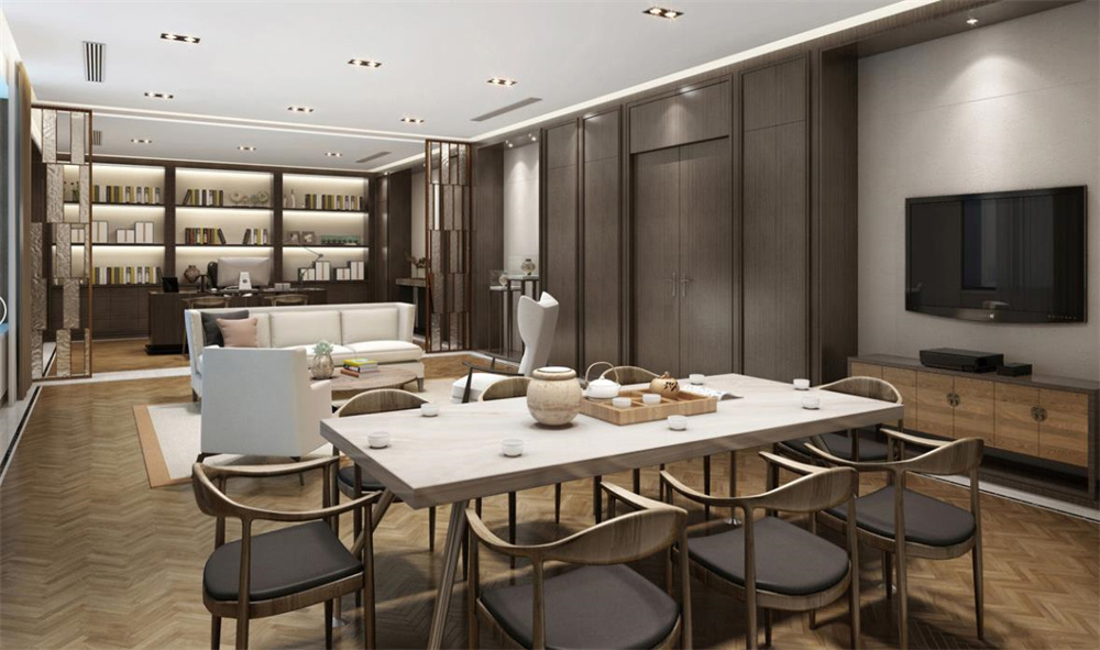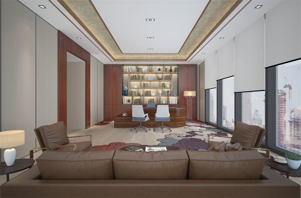 3、新中式董事長辦公室設計效果圖