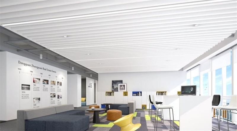 其次讓人感覺溫馨舒適的設計可以讓人們在辦公室更有歸屬感,這離不開辦公室內燈光所營造的氛圍。在燈光方面家裝的燈光比較偏暖色,明度比起辦公室中的強烈的白光相比較暗,可以營造出一種溫馨舒適的氛圍。而辦公室因為自身的屬性需要比較明亮的光線,但是在設計上在辦公室一些通道、展示墻面、文化墻以及多功能區等地方,可以局部使用偏暖色的燈光來和整體空間形成對比,打破辦公室內一成不變的使人疲憊的白光,讓辦公室空間環境增加一些舒適。