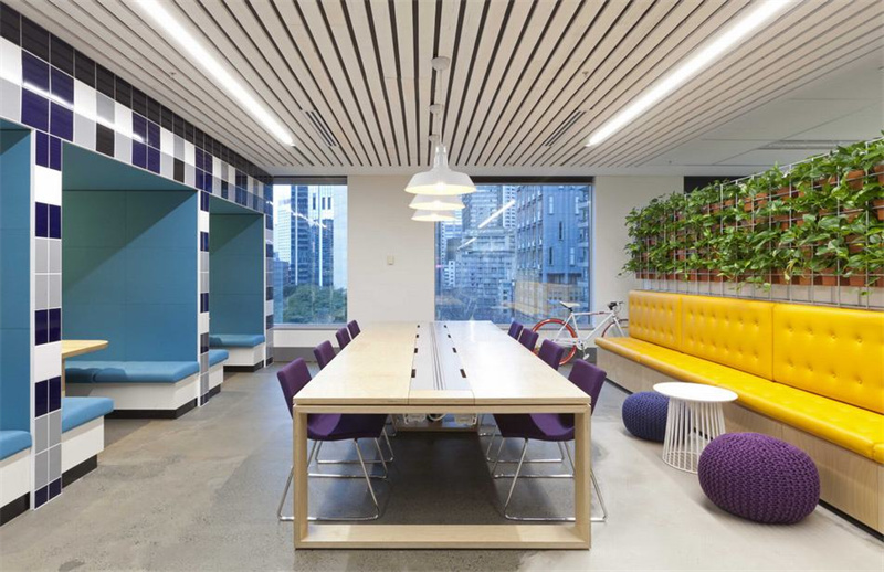 開放區域。在一個開放式的辦公區,空間視覺相當開朗,這樣的設計比較時尚,也比較適合年輕人。它不僅可以活躍氣氛,還可以促進員工之間的內部交流,增加員工的流動性和舒適度。另外,在設計的時候。可以適當收縮,用一些幾何線條或者裝飾元素,讓辦公室感覺更好。