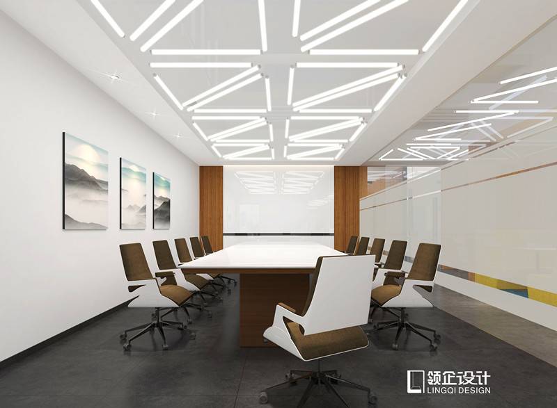 辦公室裝修效果圖接待室:和獨立辦公室一樣,遵循中式古風基調,這個接待室的“古韻”更重。仿宮燈的掛燈是一張沉重的木質長桌,上面整齊地陳列著古代文人必備的“文房四寶”。不知道旁邊墻上掛的字畫是不是也出自這些筆墨。下一步是什么?雕花木質仿古書架,中央鑲嵌一幅圓形山水畫,頗有些“世界是圓的,地方也是圓的”的寓意。要說在這個會客室里,我最喜歡的就是這扇雕花仿古木門。精湛的工藝放在一邊。就在木門被推開的時候,似乎有一種隆重的儀式感,非常適合會客和洽談房間!